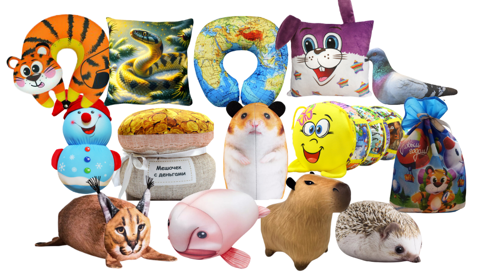 оригинальных мягких игрушек и подушек антистресс на заказ